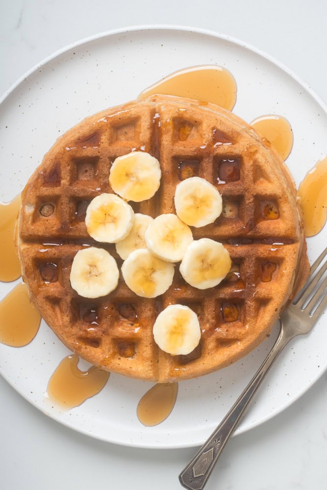 Banana waffles are a great breakfast option. Crispy waffles with a fluffy banana center with real bananas are super easy to make even for beginners.