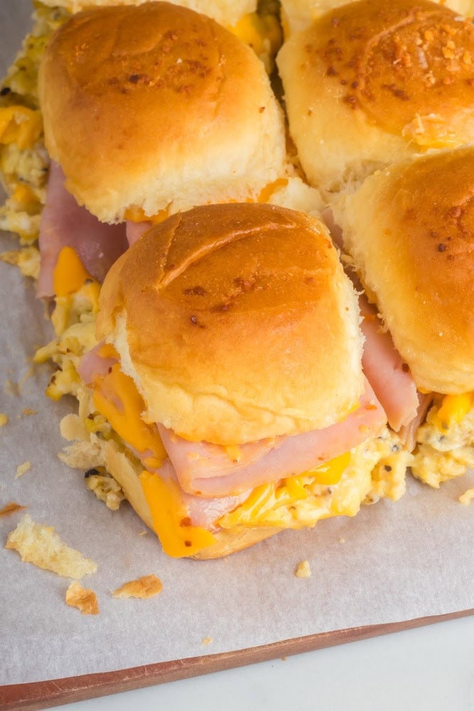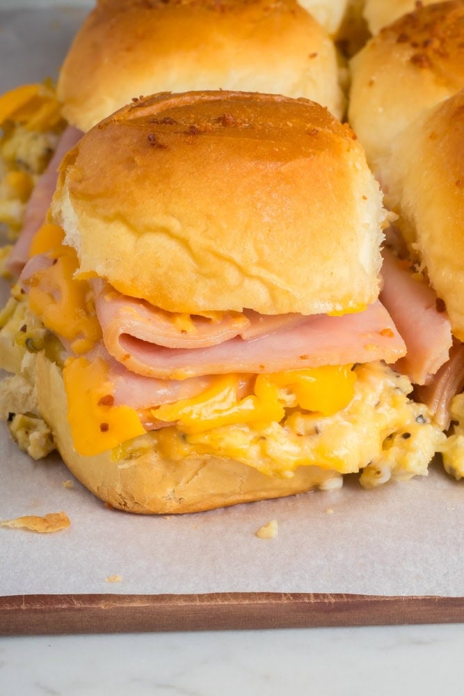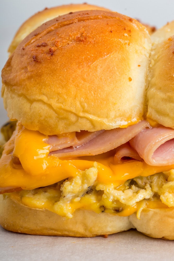 These breakfast sliders are great for making ahead. You can prep them ahead them cover them with foil and bake when you’re ready. Be sure to follow the same instructions because you’ll need to add another 5 minutes to the time they are baking while covered.