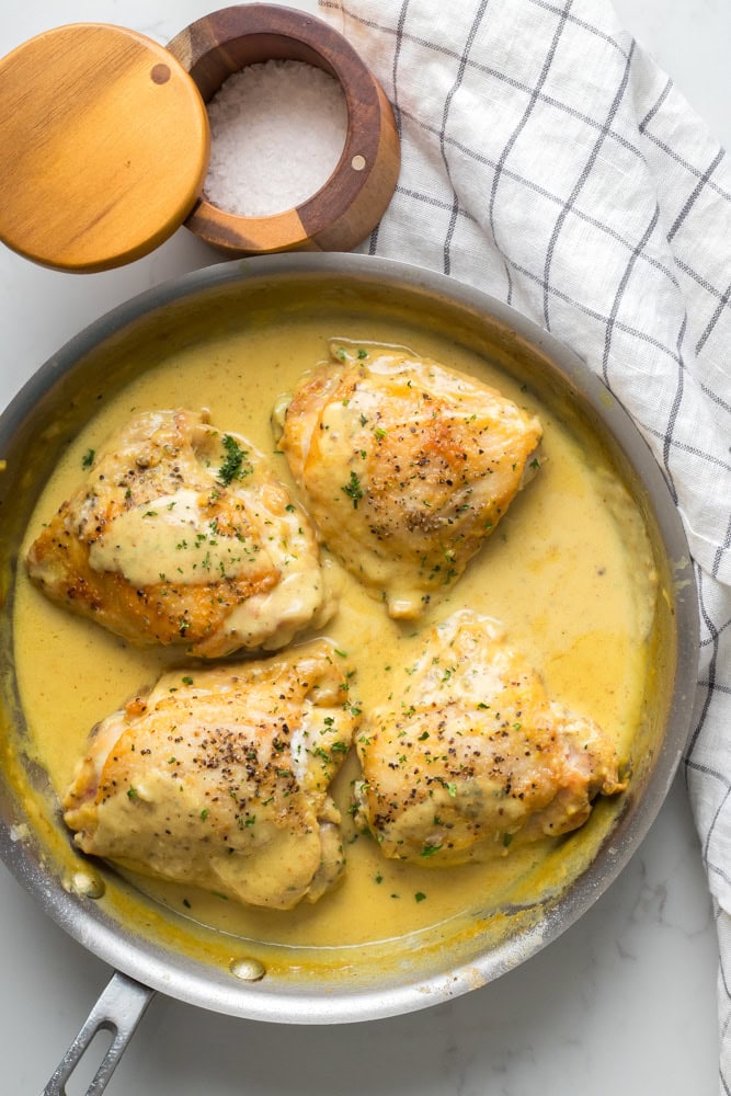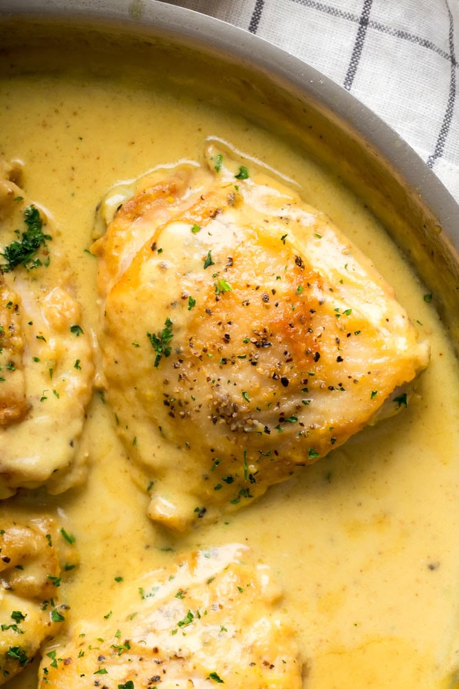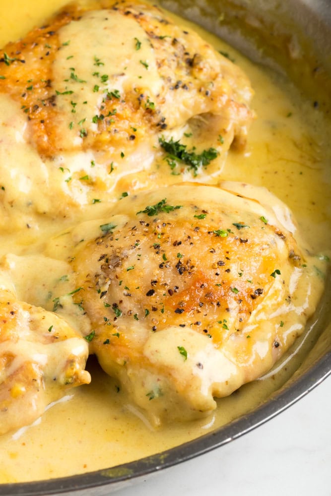 - How do they taste: The chicken thighs are pan seared until golden for extra flavor then are covered in the honey mustard. A creamy sauce is made from scratch with a touch of Dijon and then using honey to taste to bring the recipe to the perfect sweetness.