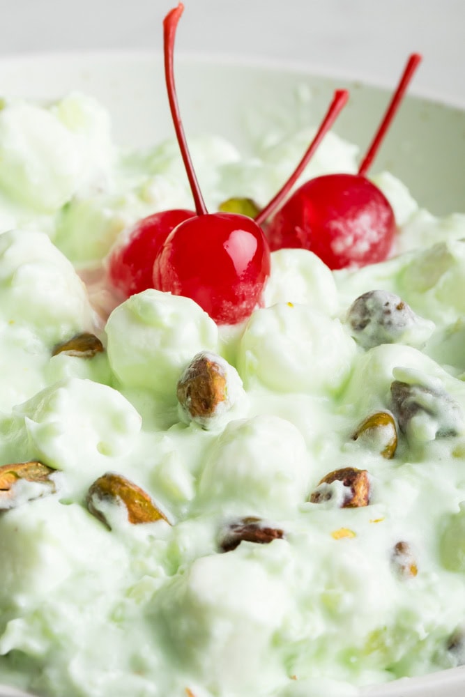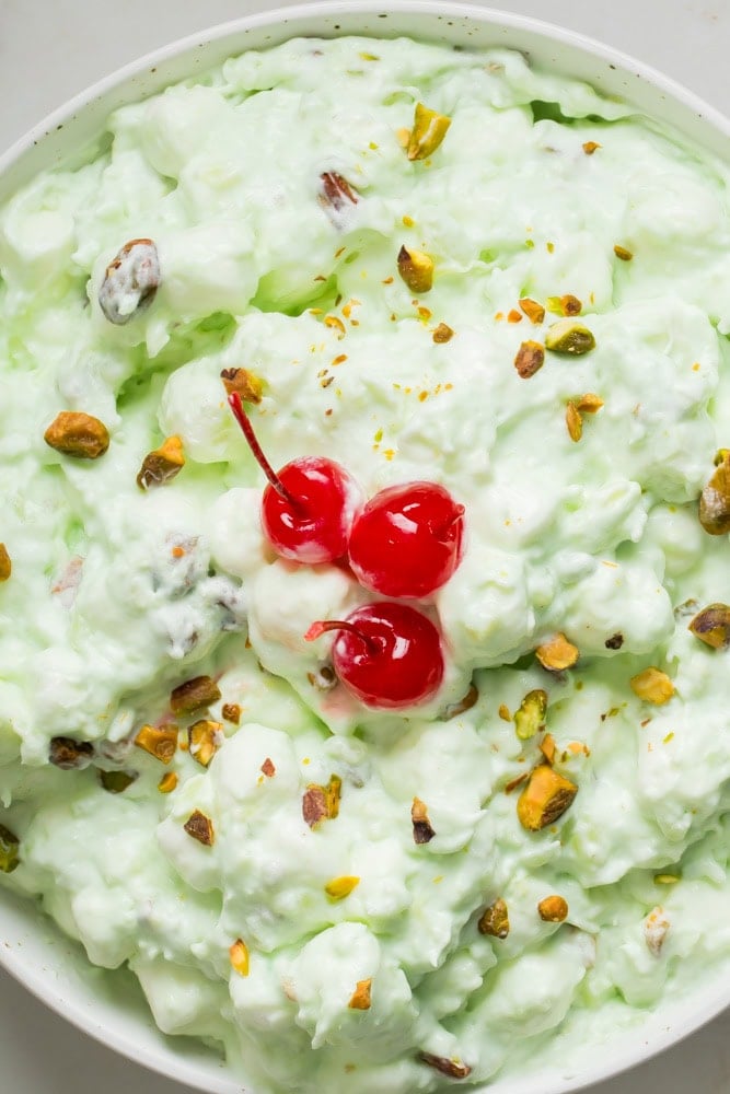 - Storing: Pistachio fluff needs to be stored in the fridge but it’s great for freezing as well.