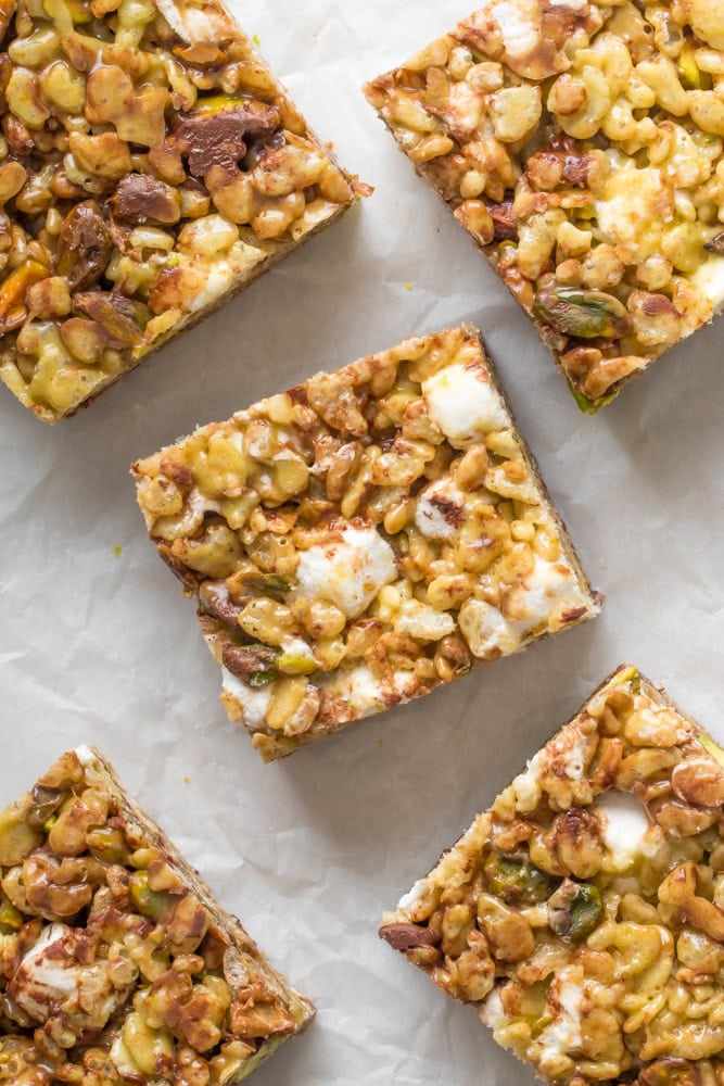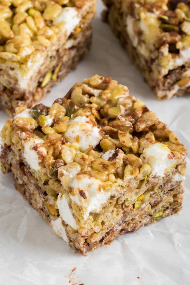 - How they taste: With the perfect balance of chocolate, pistachio butter and marshmallow you’ll get the perfect balance of each flavor in each bite. The butter is browned to boost the nuttiness of these rice krispie treats as well. If you’ve ever had a Dubai-style dessert then you are already familiar with how well these flavors work together.